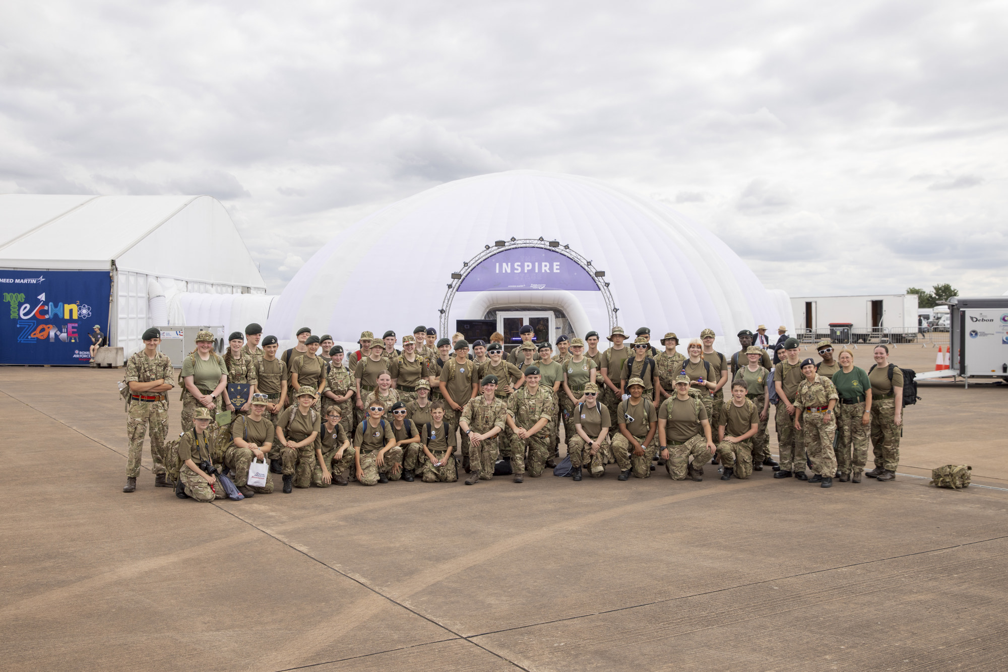 RAF Cadets in front of the Inspire Stage on Friday Futures day at RIAT25. -